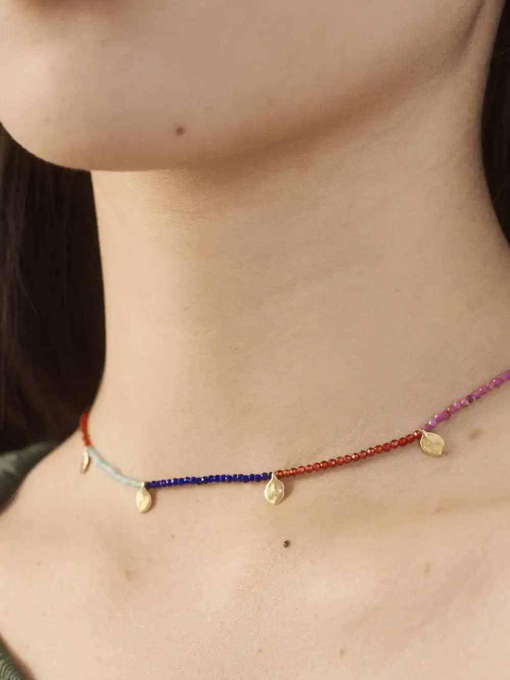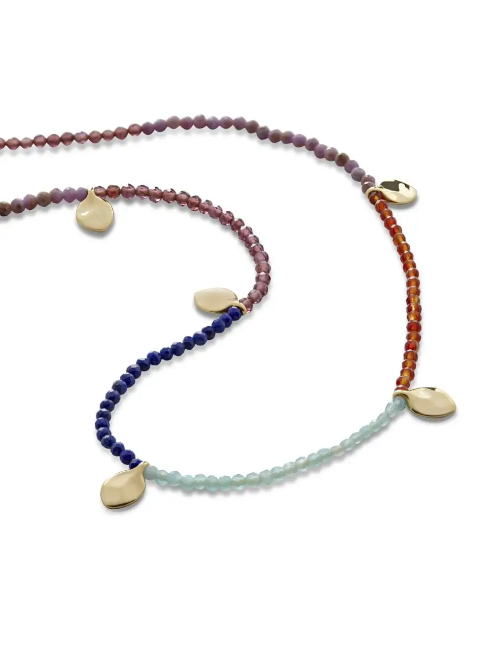 Designed in collaboration with florist Willow Crossley, this Dahlia necklace by Monica Vinader is characterised by its dainty yet vibrant look. It’s strung with multicoloured gemstone beads interrupted by petal-shaped charms in 18kt recycled gold vermeil.Â