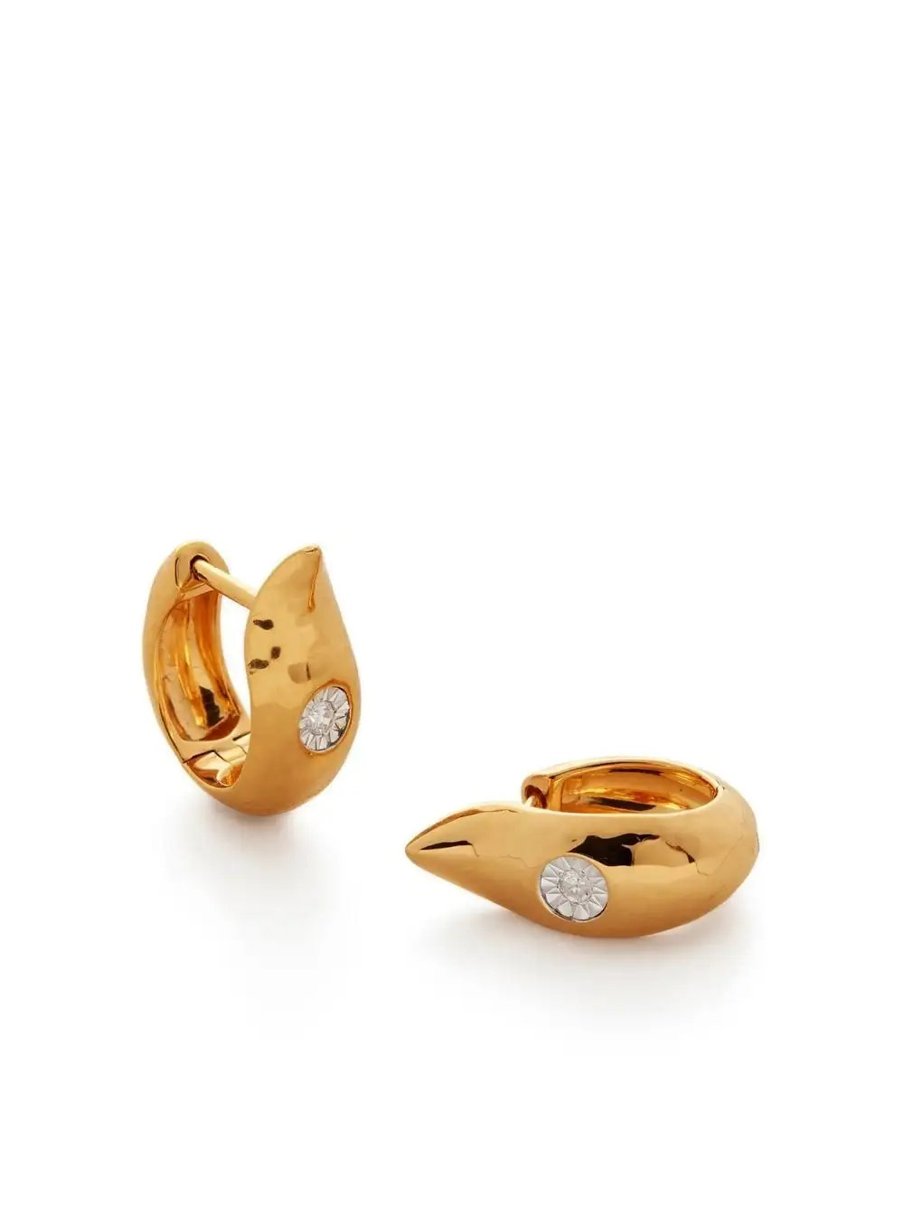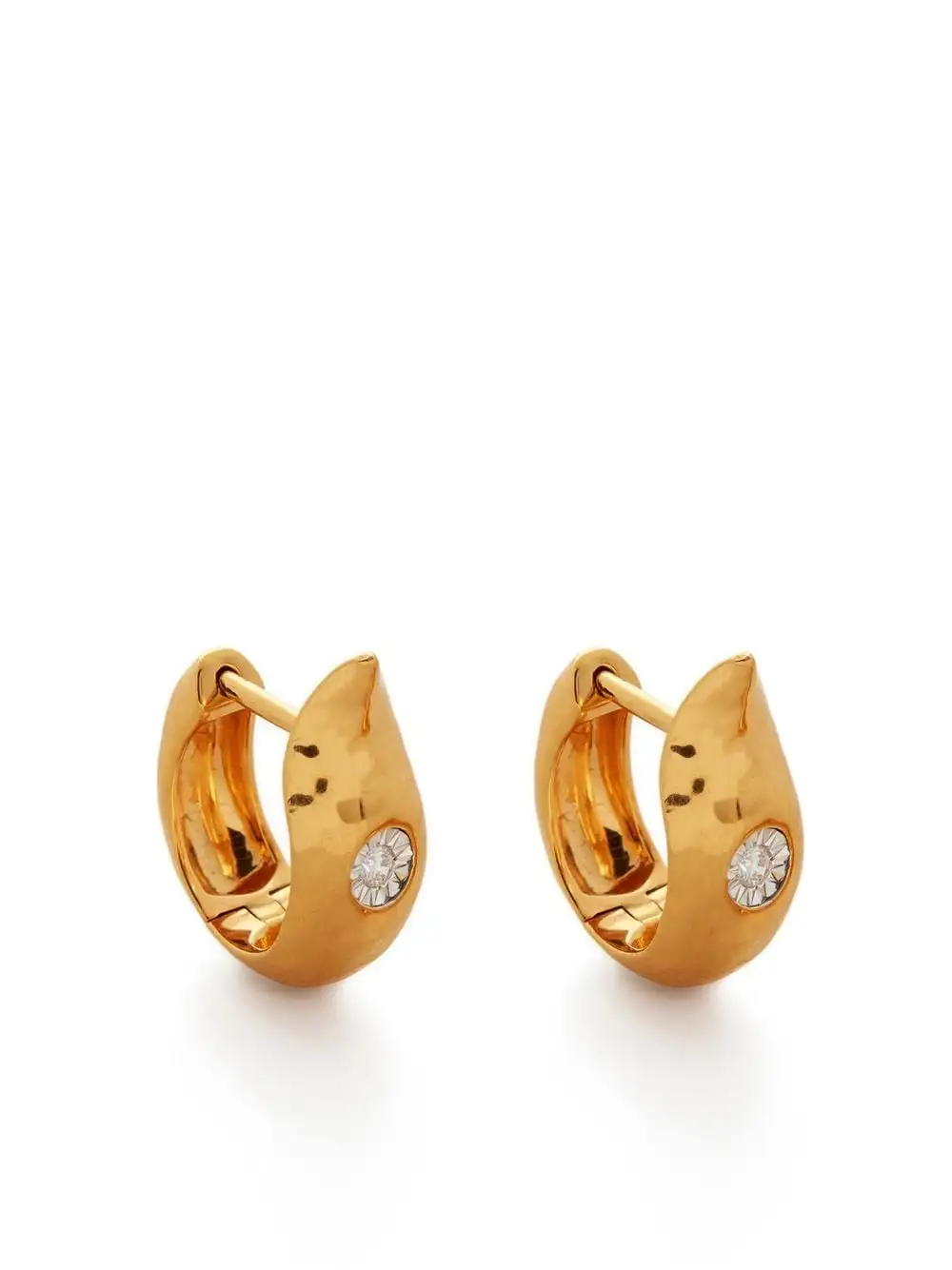 Deia Diamond small hoop earrings from MONICA VINADER featuring gold vermeil plated, hammered-effect finish, small hoop design, solitaire cut, bar-pin fastening and for pierced ears. These earrings come as a pair.. Every handcrafted Monica Vinader piece comes with a five-year warranty.. Conscious: We’ve partnered with Good On You – an ethical agency that rates how sustainably brands perform. This item comes from a brand that performs well in relation to their impact on the planet..