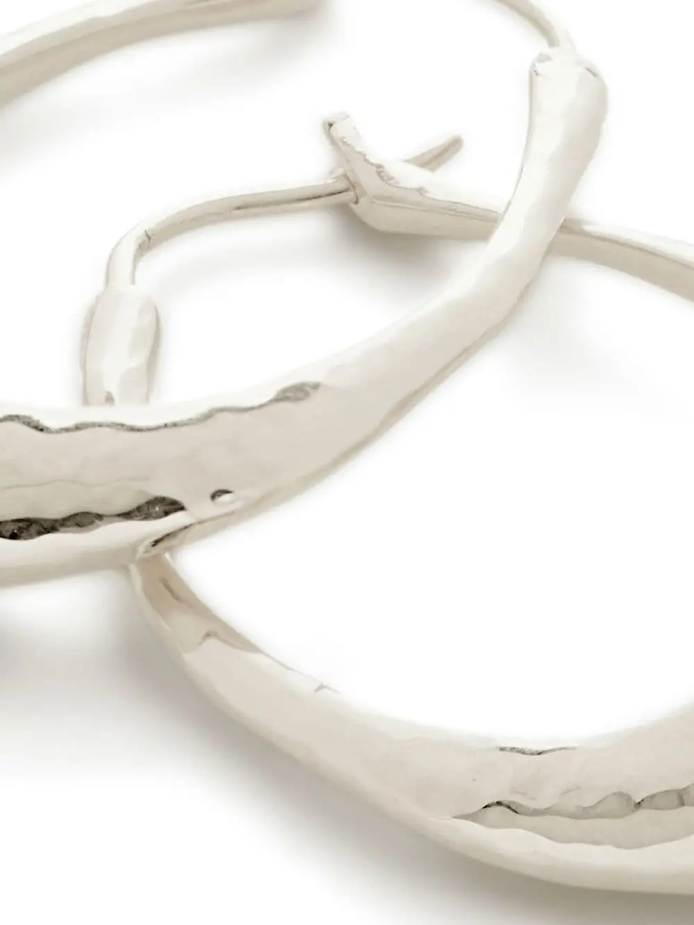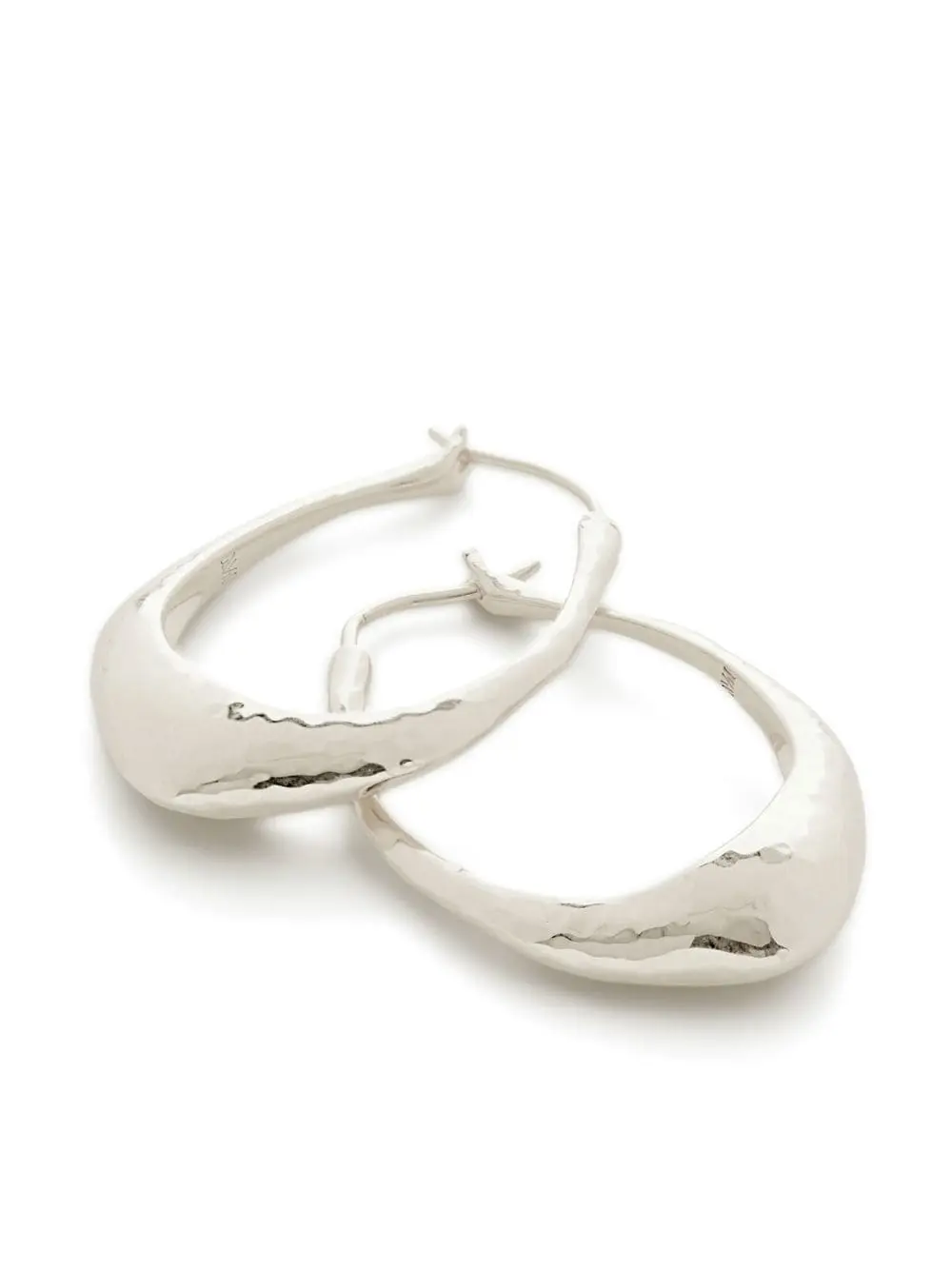 Monica Vinader plays with texture transforming a classic pair of hoops with this recycled silver pair that captures the light beautifully with its hammered surface.Â