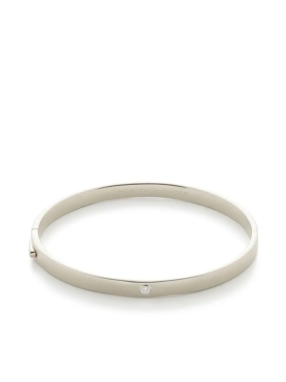 Diamond Essential bangle bracelet from MONICA VINADER featuring recycled silver, crystal embellishment, engraved logo and slip-on style. Every handcrafted Monica Vinader piece comes with a five-year warranty.. Conscious: We’ve partnered with Good On You – an ethical agency that rates how sustainably brands perform. This item comes from a brand that performs well in relation to their impact on the planet..