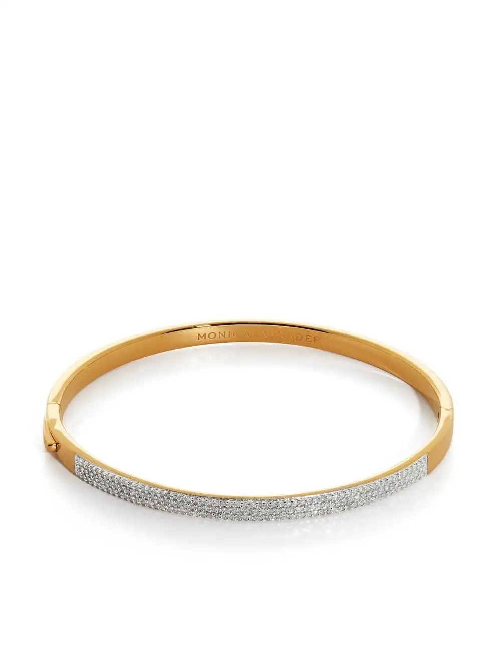 Monica Vinader combines comfort with radiance as showcased on this refined gold vermeil bangle that delicately sits on the wrist whilst the pave diamonds delightfully dazzle.Â
