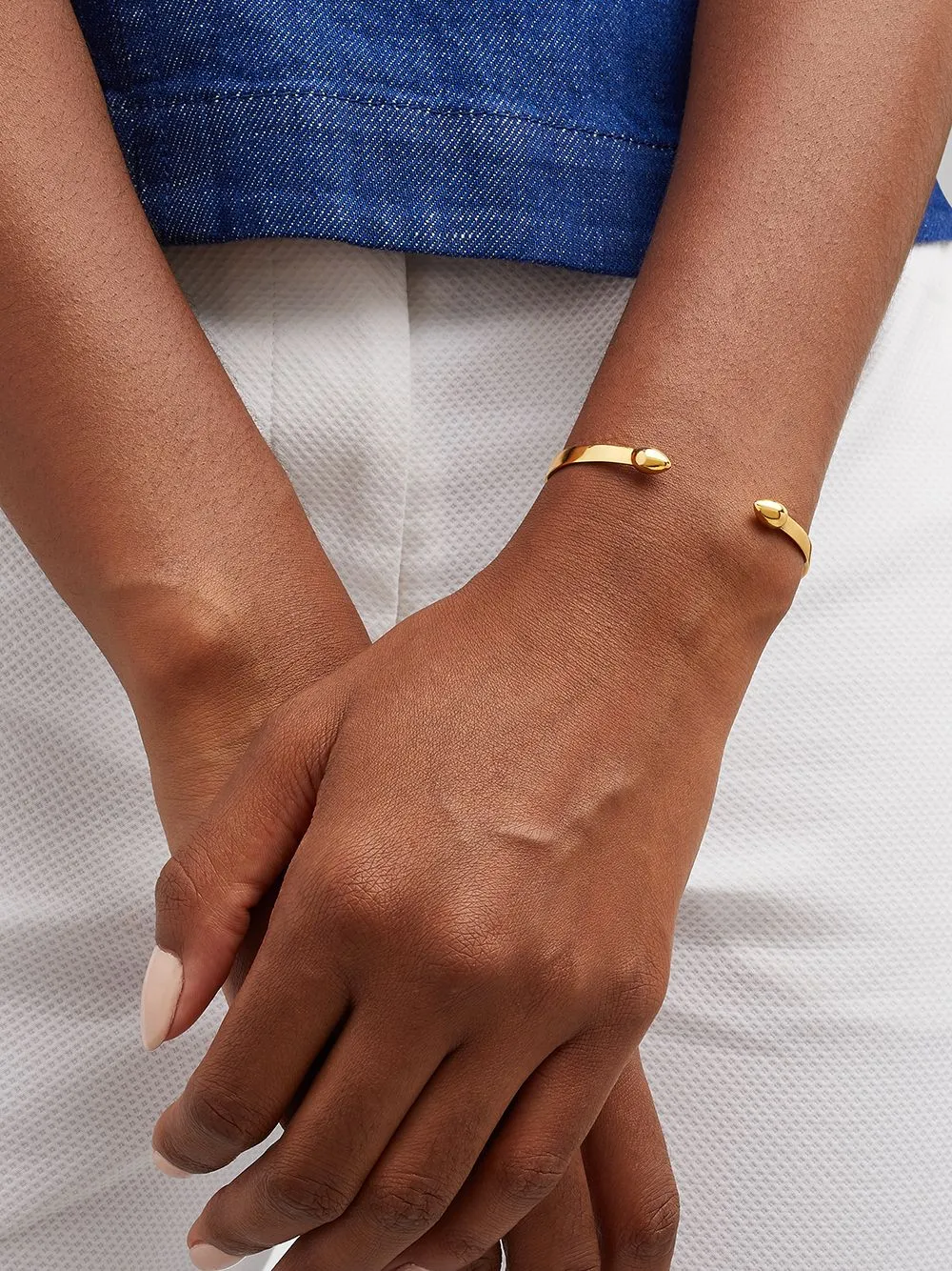 18kt yellow gold recycled silver Fiji Bud cuff from MONICA VINADER featuring internal logo stamp, polished finish and bud ends. Every handcrafted Monica Vinader piece comes with a five-year warranty.. Conscious: We’ve partnered with Good On You – an ethical agency that rates how sustainably brands perform. This item comes from a brand that performs well in relation to their impact on the planet..