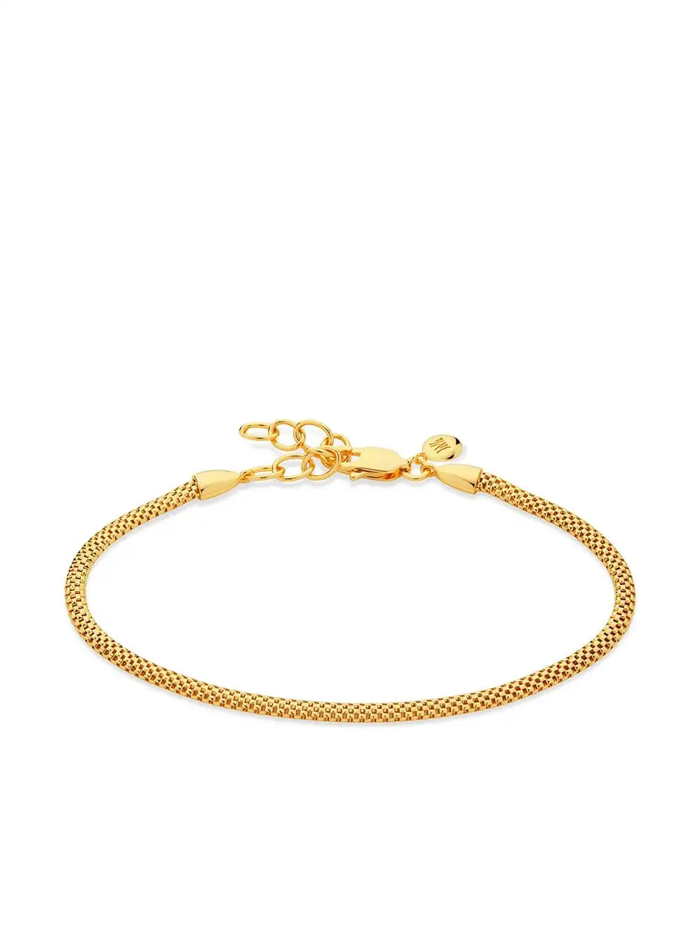 Best known for their ethically sourced diamonds and recycled silver, Monica Vinader’s jewelry collection is unrivaled in beauty, glamour, and drama. This x Doina Heirloom woven fine chain bracelet boasts an 18kt gold vermeil and recycled silver construction in a mesh chain style.Â
