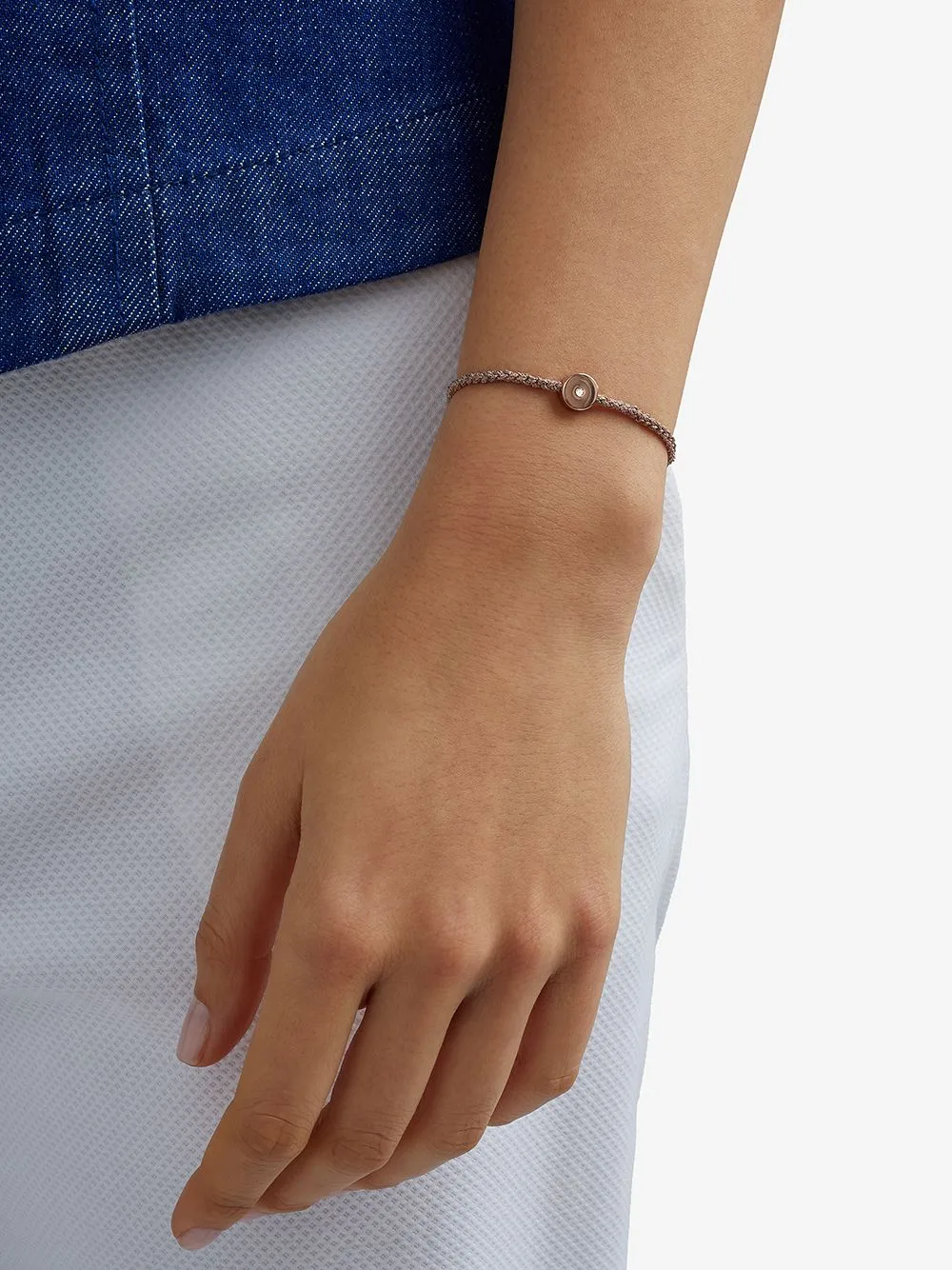 Best known for their ethically sourced diamonds and recycled silver, Monica Vinader’s fine jewellery collection is unrivaled in beauty, glamour, and drama. This Linear Solo Friendship bracelet boasts a woven design with 18kt rose gold vermeil detailing punctuated by a H/I I1 quality grade diamond detail. Shine bright.