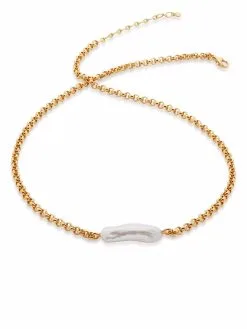 Jewellery designer, Monica Vinader draws inspiration from the world around as showcased in this beautiful piece which conjures up images of shimmering seas with its iridescent cultured freshwater pearl that is delicately fitted on an 18kt recycled gold vermeil chain.