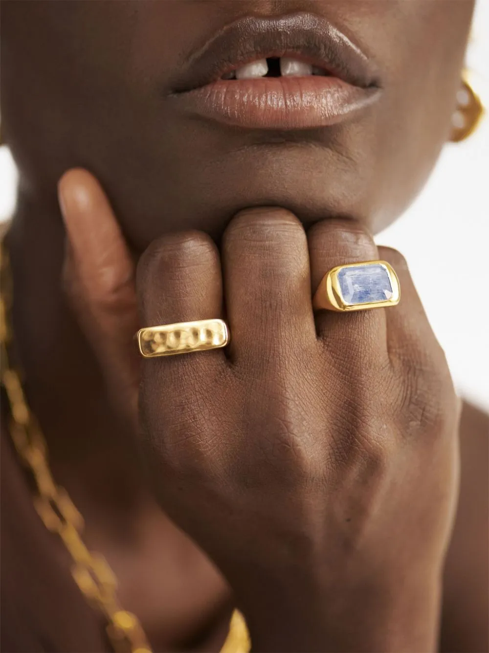 Monica Vinader’s Power ring is centred with a vibrant hand-cut blue kyanite gemstone nestled inside a bezel setting. The facets allow it to glitter from all angles.