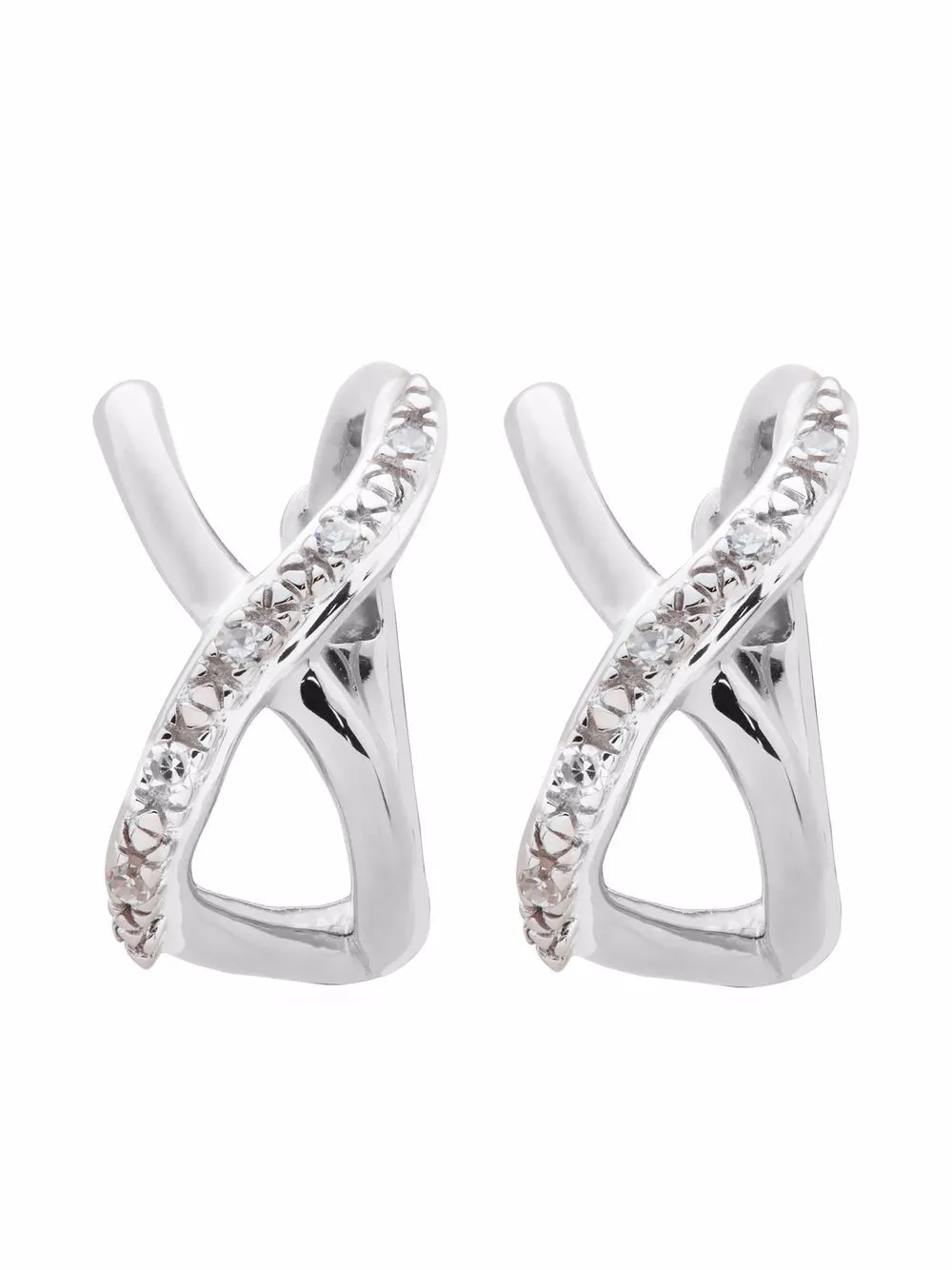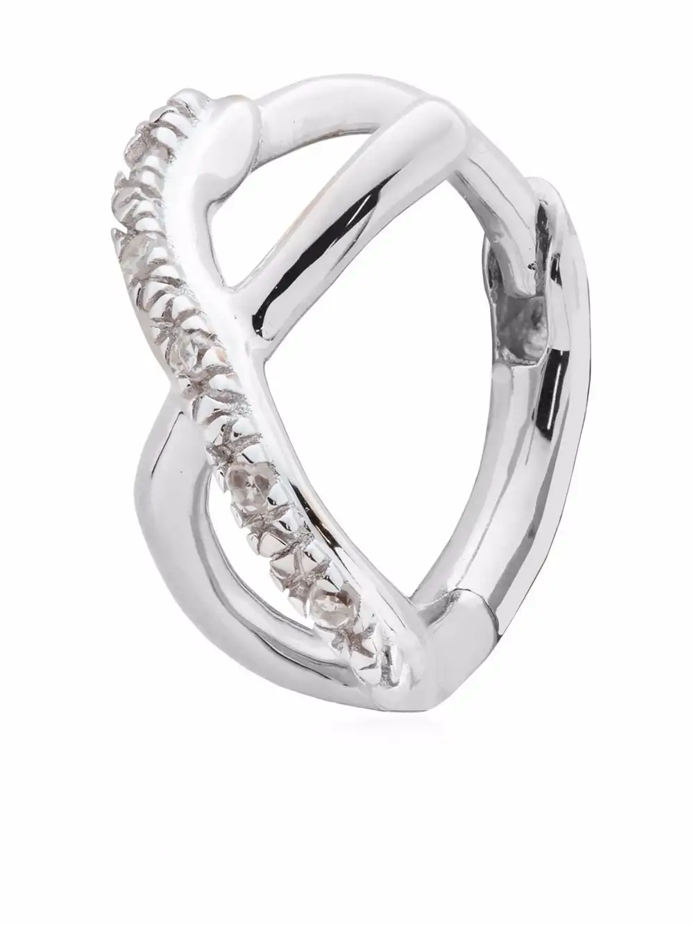 With a firm focus on everyday wearable styles, Monica Vinader champions timeless jewellery. These huggie earrings have a crossover design, detailed with textured engraving and white diamonds.