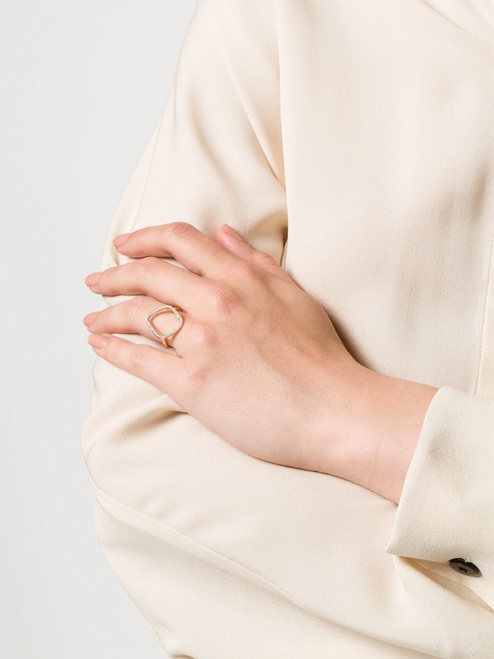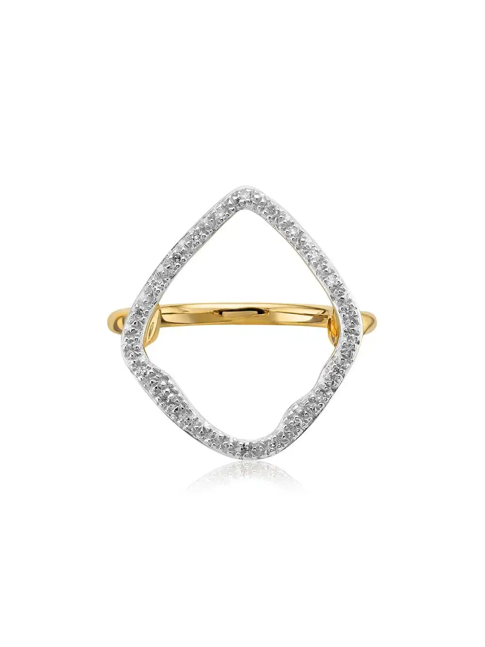 The irregular hoop shape on this ring measures approximately 16.7mm x 19.7mm and features pave set diamonds totalling 0.06kt. This cocktail ring is a contemporary way to wear diamonds and shines beautifully alone or paired with other jewellery from the Riva collection. Every hand-crafted Monica Vinader piece comes with a 5-Year Warranty and lifetime repair service.