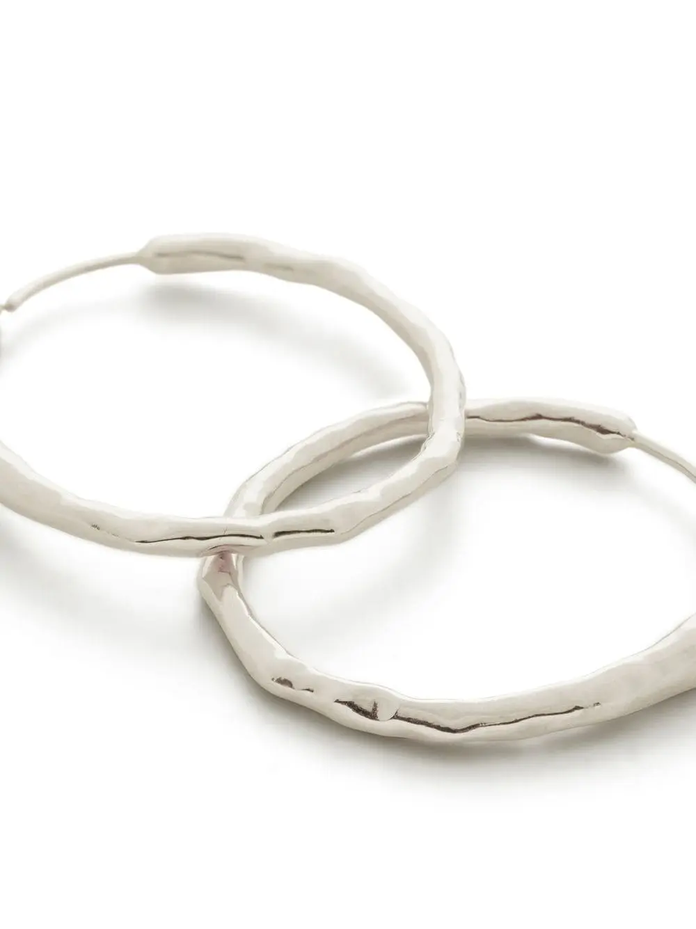 Siren muse medium hoop earrings from MONICA VINADER featuring recycled silver, medium hoop design, hammered-effect finish and clasp fastening. Every handcrafted Monica Vinader piece comes with a five-year warranty.. POSITIVELY CONSCIOUS: We’ve partnered with Good On You — an ethical agency that rates how sustainably brands perform across various people, planet and animal welfare criteria. This product comes from a Conscious brand that performs well in relation to their impact on the planet, for example ensures the use of materials that limit the amount of chemicals, water and wastewater involved in production processes..