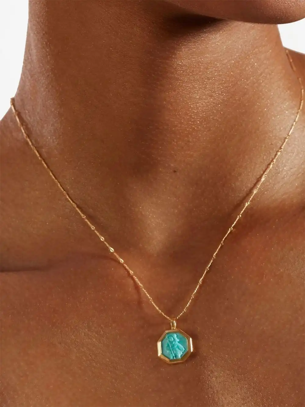 St Christopher pendant from MONICA VINADER featuring gold-tone, turquoise, gold vermeil plated, octagonal-shaped case, carved St Christopher image and 14.3mm height, 14.3mm width. Every handcrafted Monica Vinader piece comes with a five-year warranty.. Conscious: We’ve partnered with Good On You – an ethical agency that rates how sustainably brands perform. This item comes from a brand that performs well in relation to their impact on the planet..